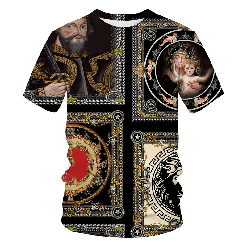Футболка мужская с 3D-принтом в стиле барокко, роскошная брендовая Модная рубашка с коротким рукавом, Детская футболка, европейский размер, оптовый продавец, лето
