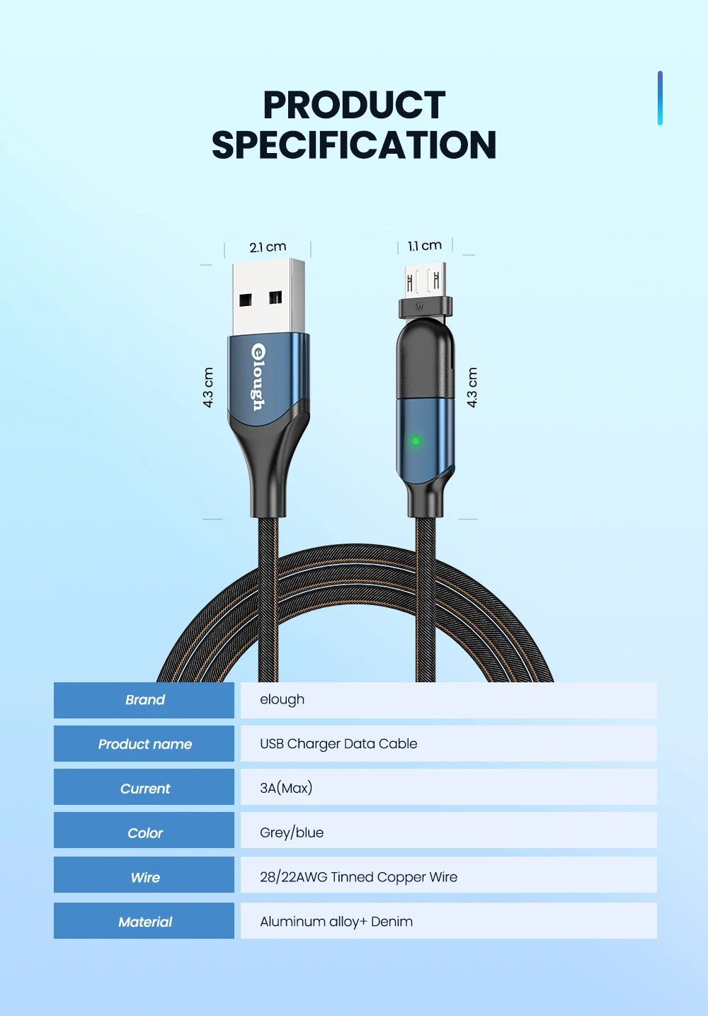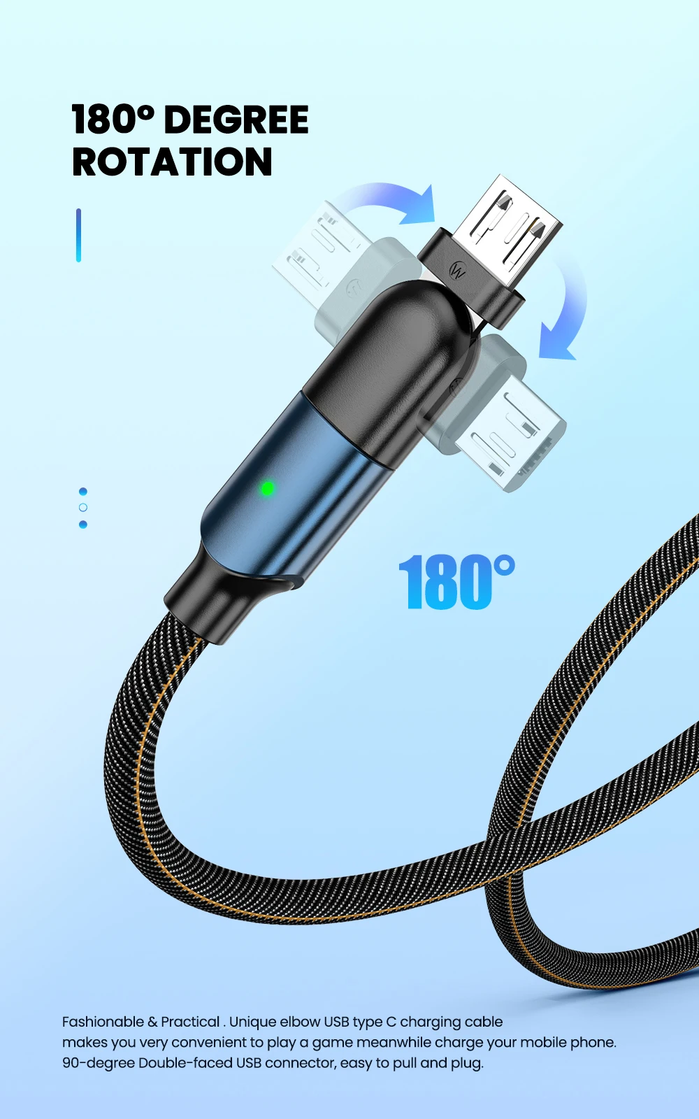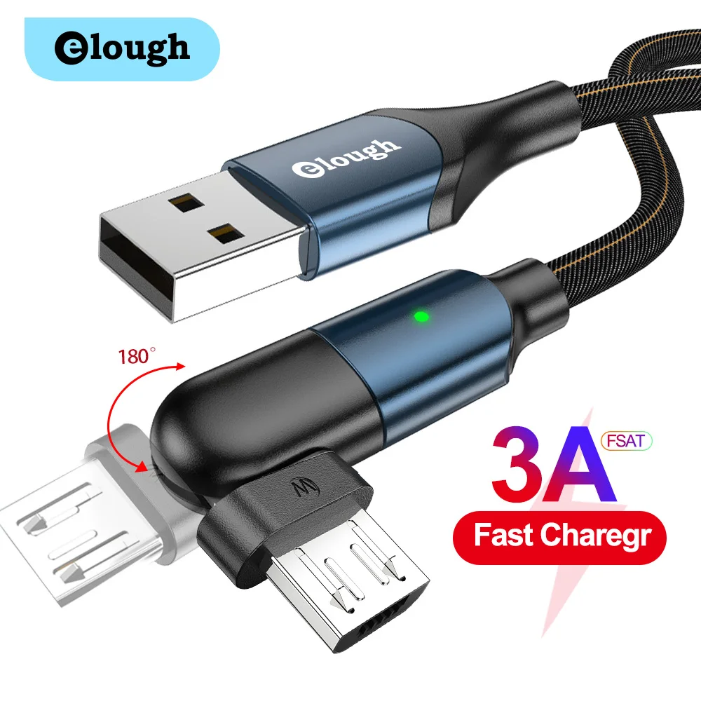 Зарядный кабель Micro USB Elough, поворотный на 180 градусов, 3 А