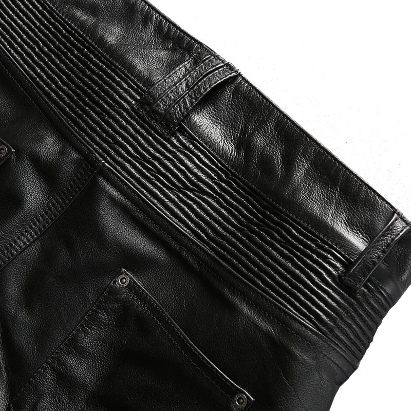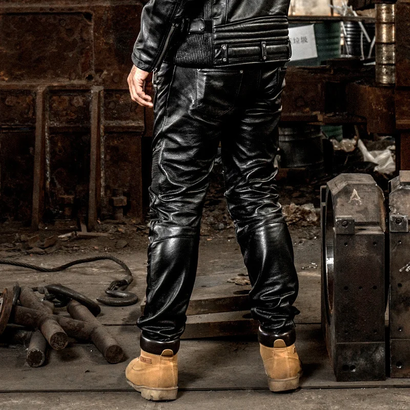 Брюки мужские длинные из натуральной кожи, брендовые байкерские штаны для профессионалов, облегающие защитные штаны из воловьей кожи