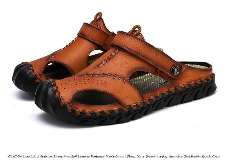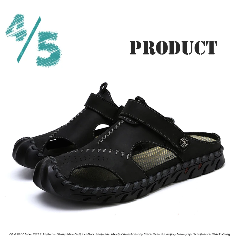 Мужские повседневные сандалии, дышащая модная обувь из натуральной ...