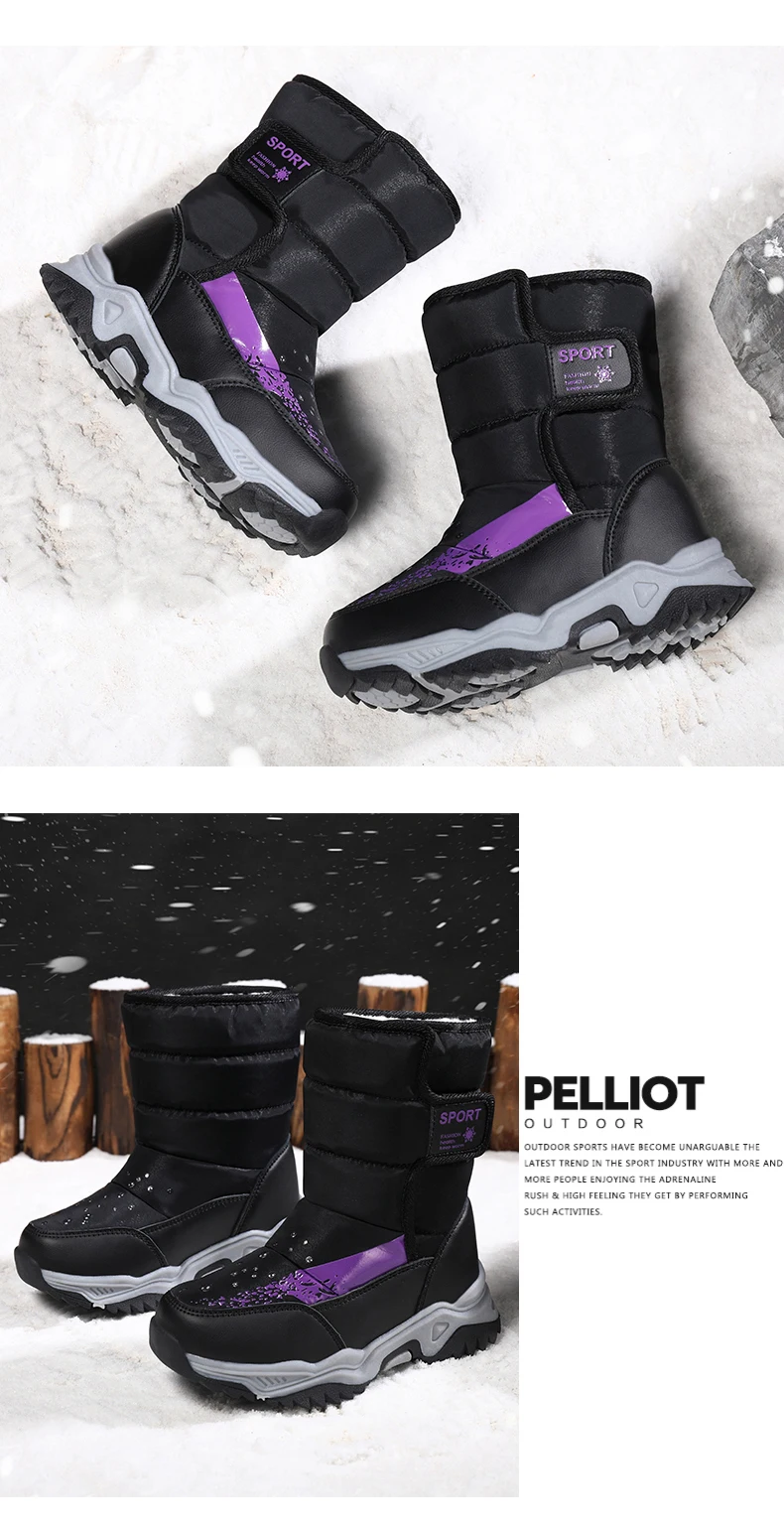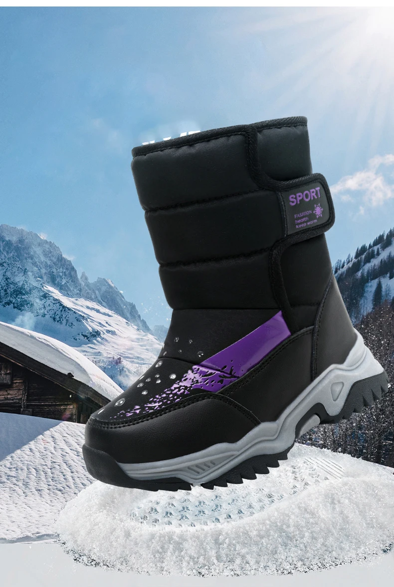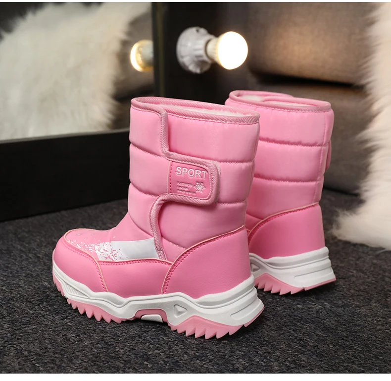 Зимние ботинки для мальчиков, детская обувь для девочек, сапоги, детская обувь, водонепроницаемая обувь на резиновой платформе с плюшевой подкладкой, теплые сапоги до середины икры с круглым носком