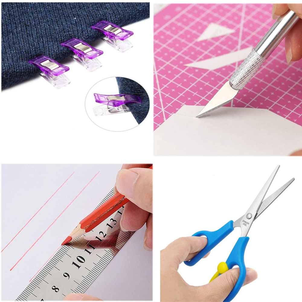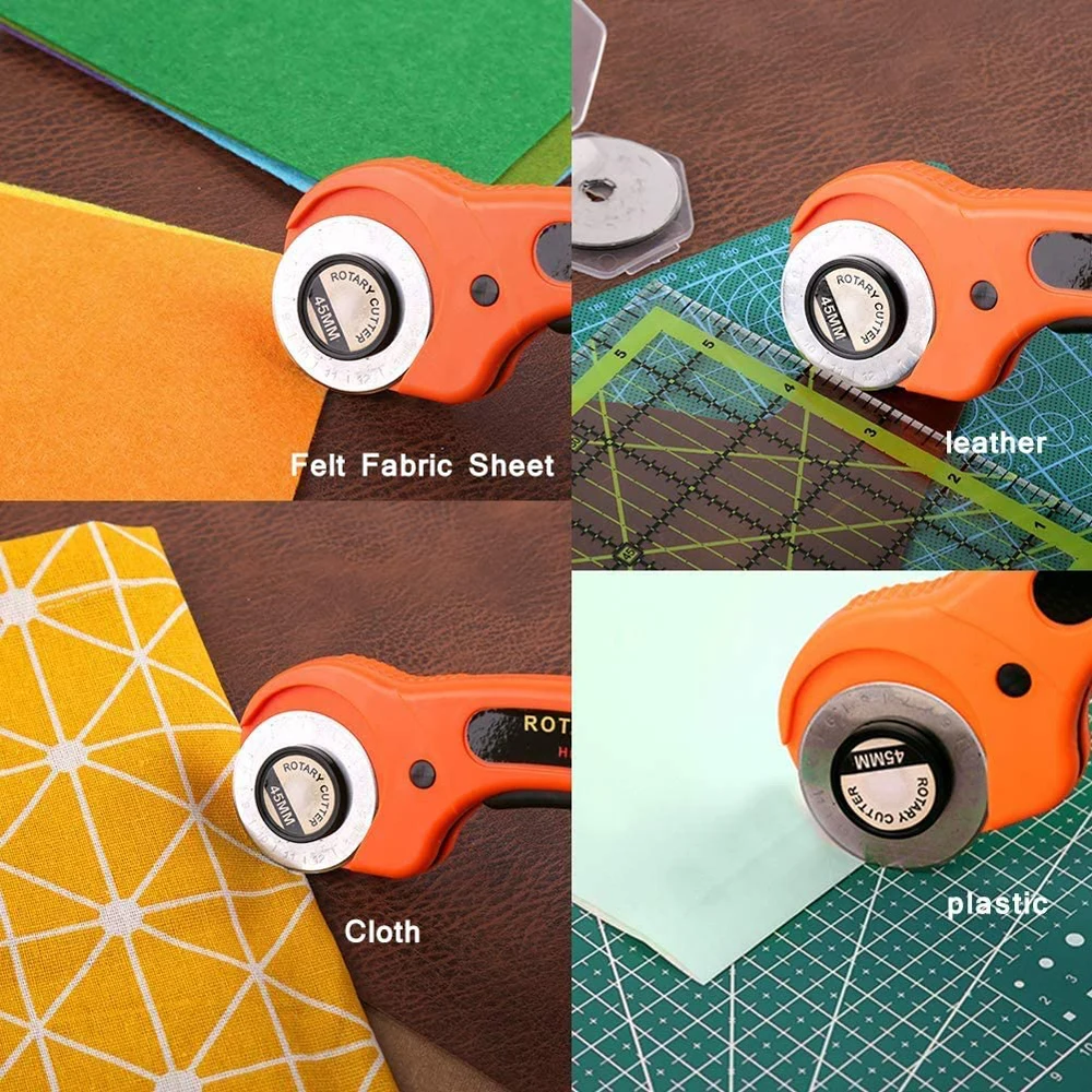 Набор роторных резаков 45 мм 22 шт., набор для квилтинга с 5 дополнительными лезвиями и ковриком для резки A4, линейкой для квилтинга и швейными зажимами для резки ткани