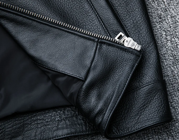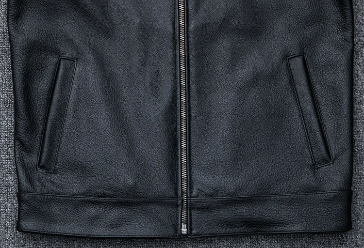 Мужская винтажная куртка из коровьей кожи, Черная байкерская куртка...