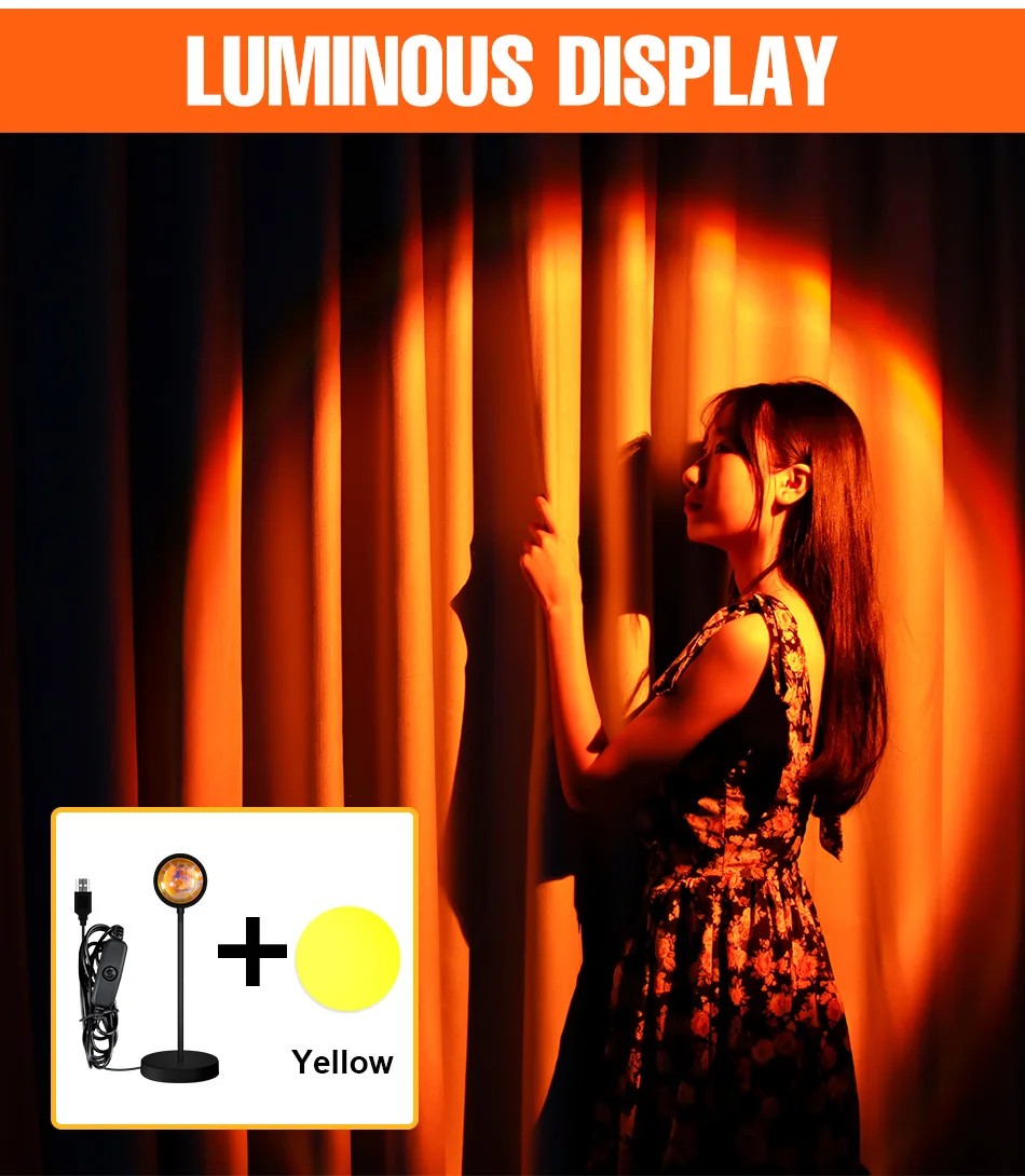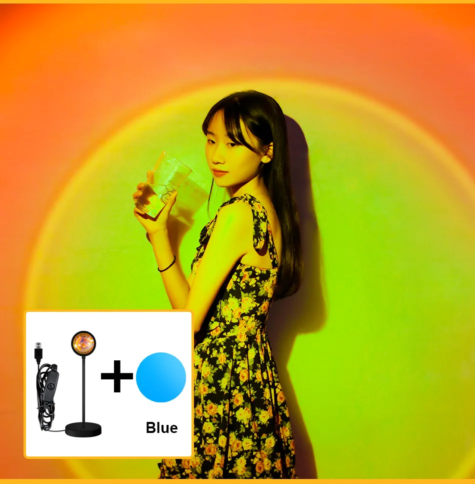 Светодиодная лампа для проекции заката, Радужный Настольный светильник с USB, 5 В, напольный ночсветильник с фотофильтром, 15 цветов