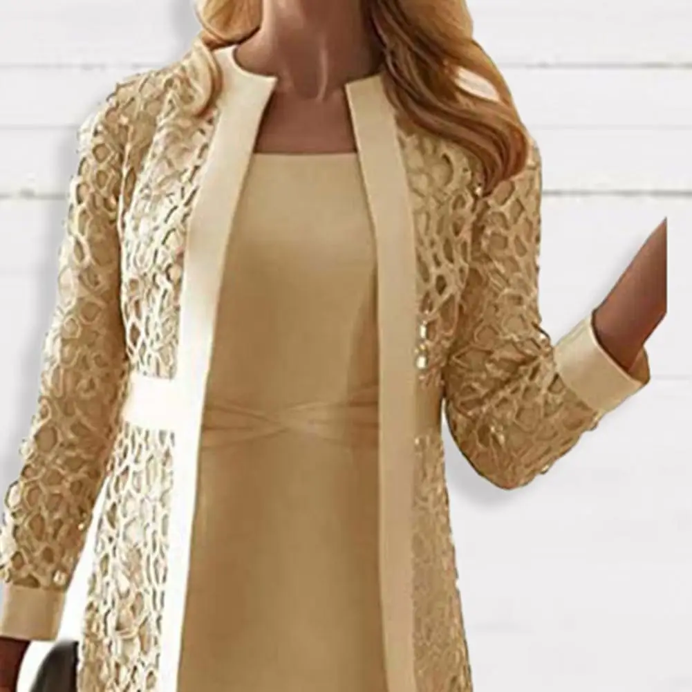 Женский костюм, однотонное Кружевное платье-Кардиган с длинным рукавом до колен, пальто в офисном стиле + платье-жилет