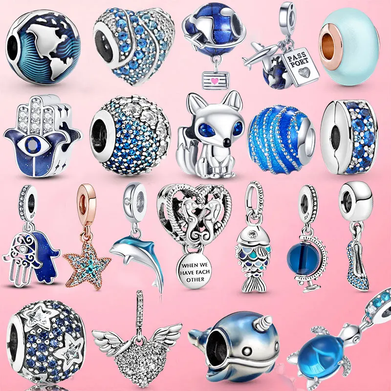Оригинальные подвески для браслета, серебро 925 пробы, голубые глаза