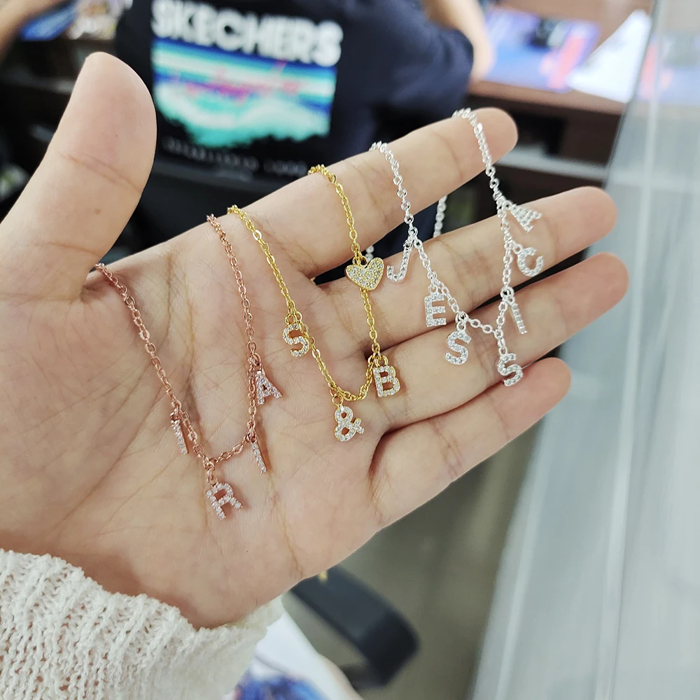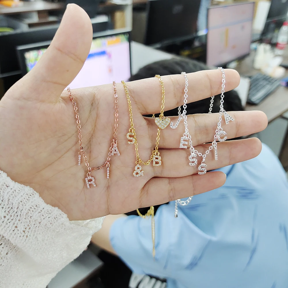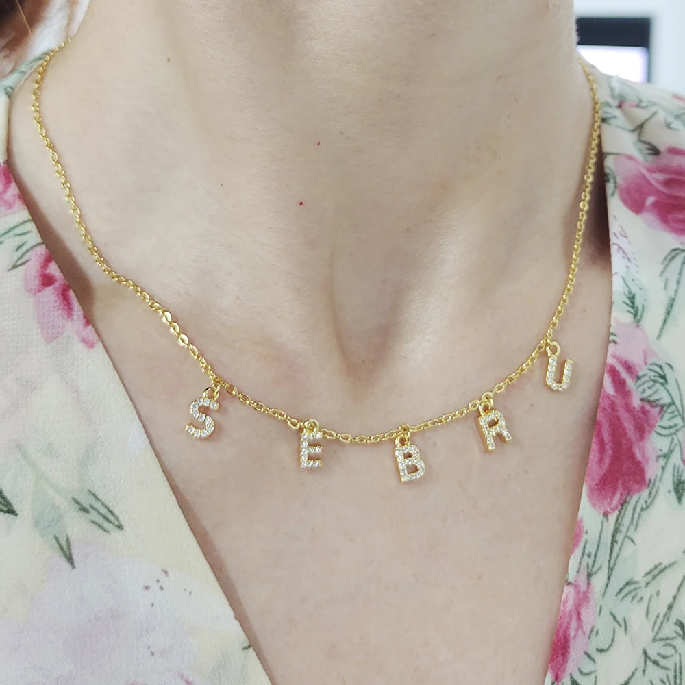 Чокер персонализированные имя Циркон Проложить ожерелья с буквой персонализированные пользовательские имя ожерелья с именами шары цепь ожерелья ожерелье с буквами