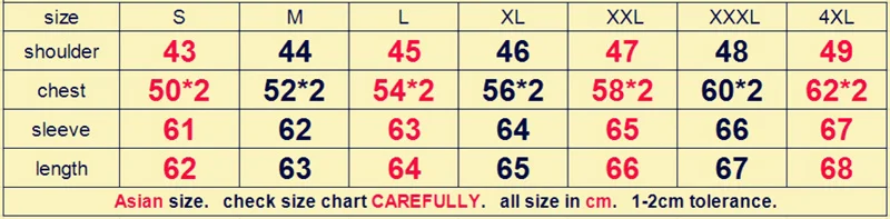 Пожалуйста, проверьте таблицу размеров и измерьте вашу куртку, как показано ниже.