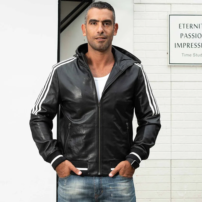 Куртка мужская из натуральной кожи, черная теплая куртка-бомбер из ...