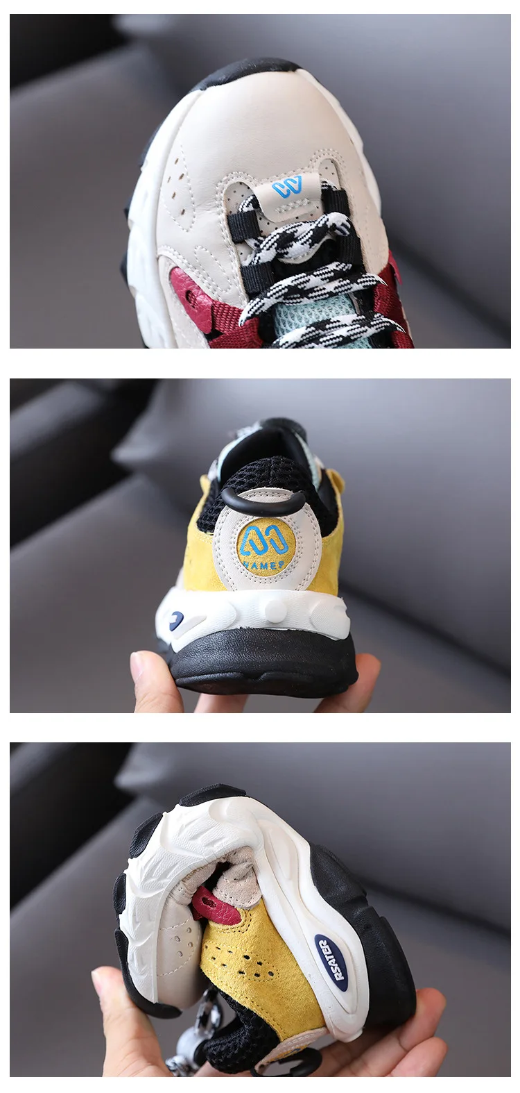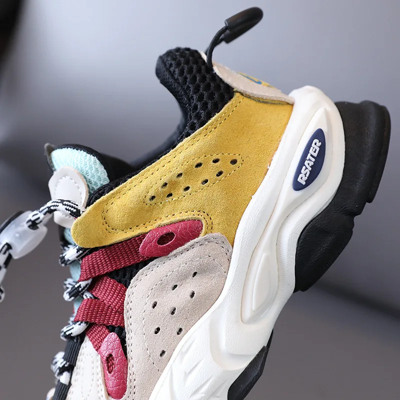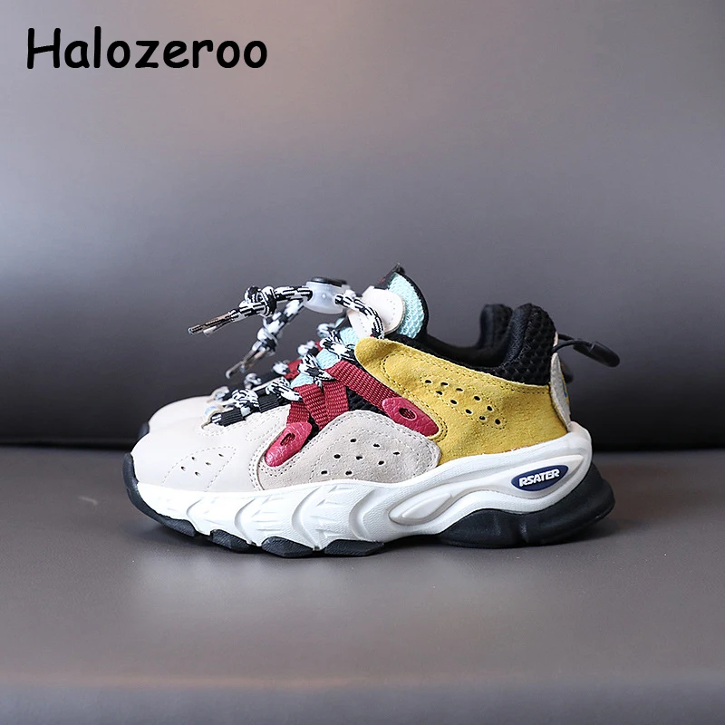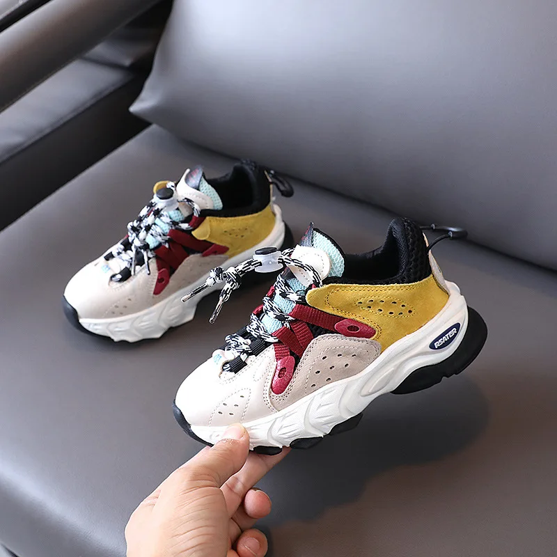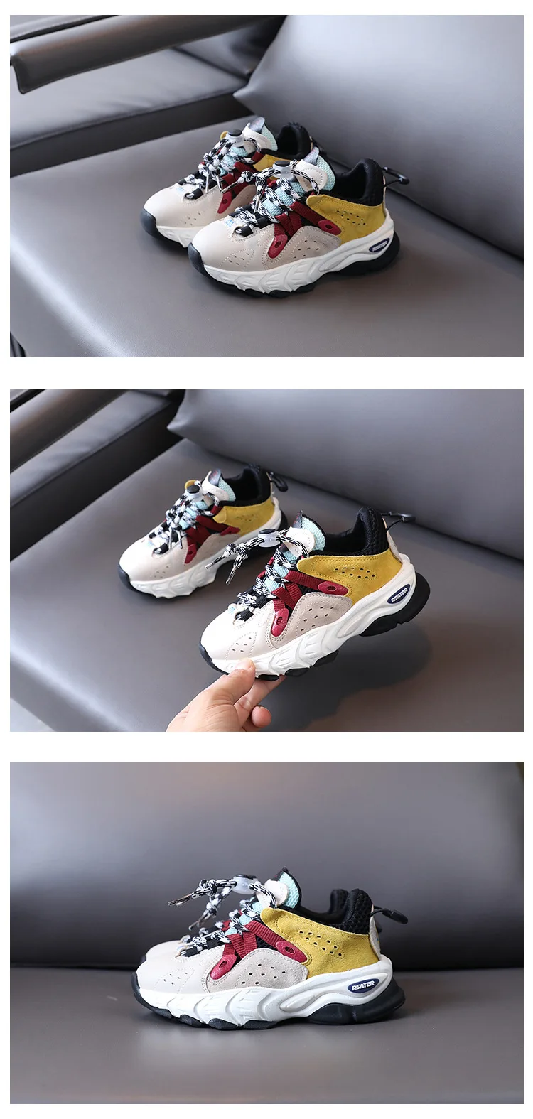 Кроссовки детские из натуральной кожи, массивные, Брендовые спортив...