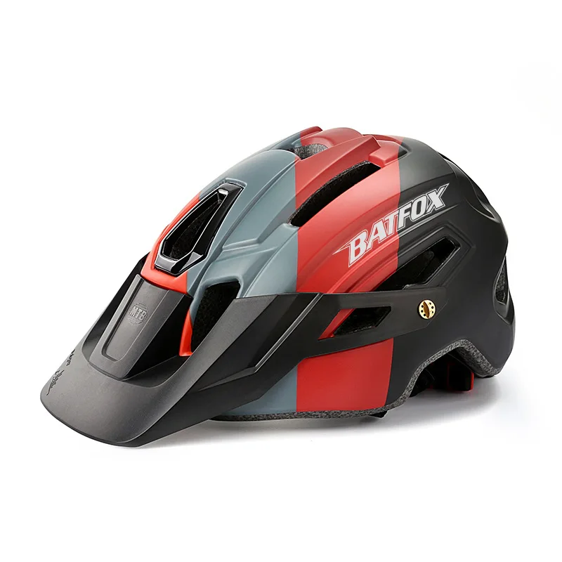 Горный велосипедный шлем Batfox, красная предупреждающая лампа, цельноформованный, с большими полями, для горных велосипедов