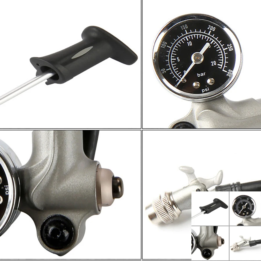 Велосипедный воздушный амортизационный насос с рычагом и манометром для вилки и задней фототехники, складной 300psi, высокое давление