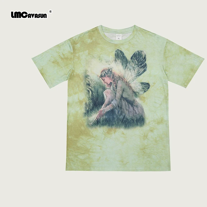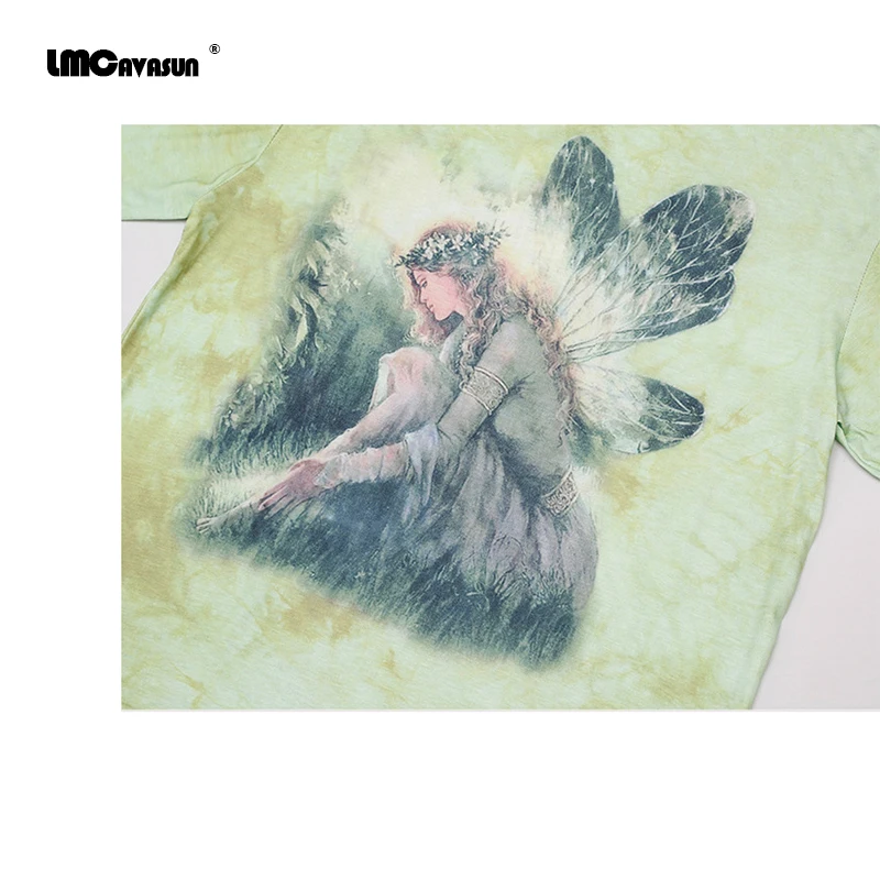 Футболка женская с коротким рукавом, Свободный Топ в стиле Харадзюку, с принтом эльфа и коротким рукавом, градиентная, в стиле хип-хоп