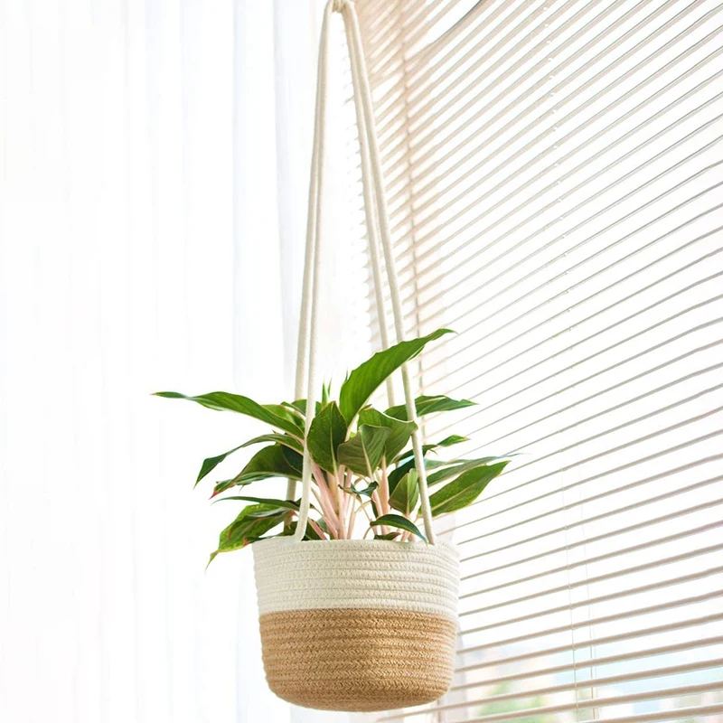 Подвесное кашпо, плетеная корзина для растений с джутом и хлопковым шнуром, комнатный цветочный горшок для макраме, вешалки для комнатных растений