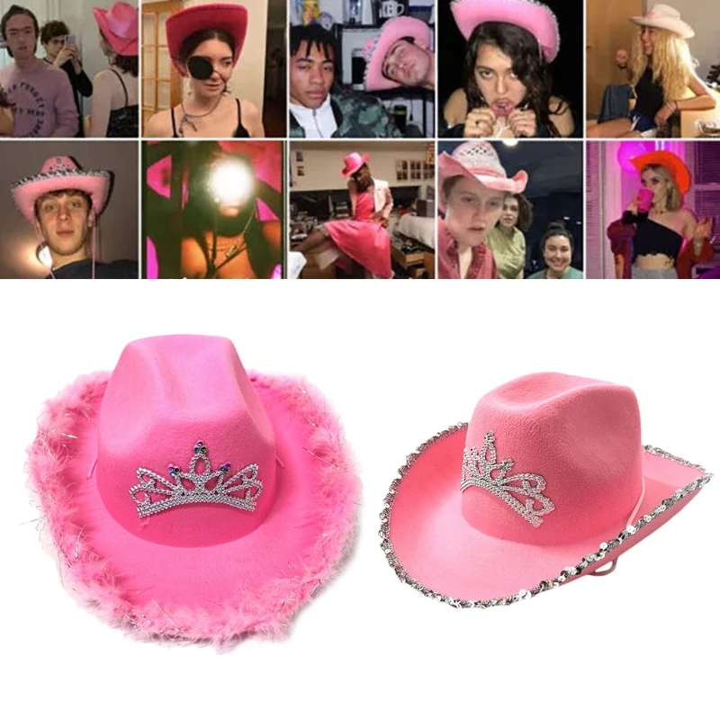 Украшенная палочкой шляпа в розовой тиаре с краями из перьев