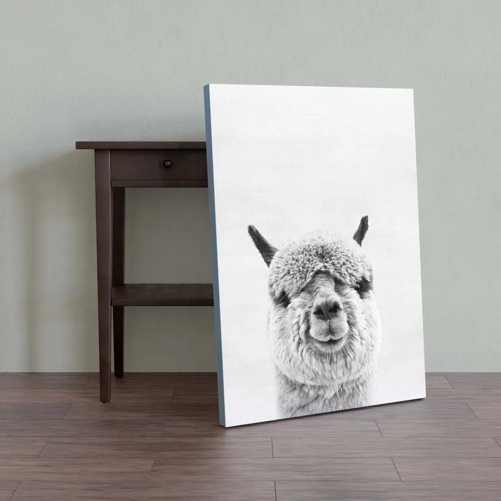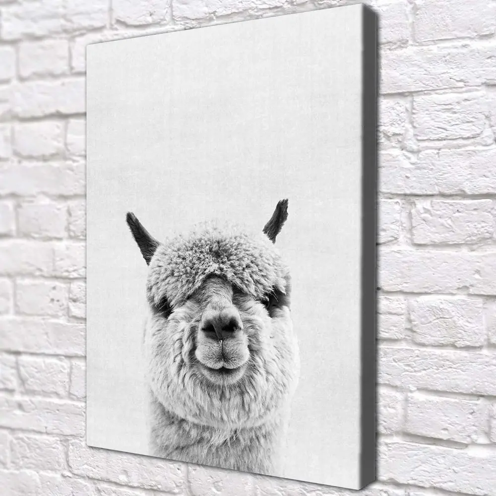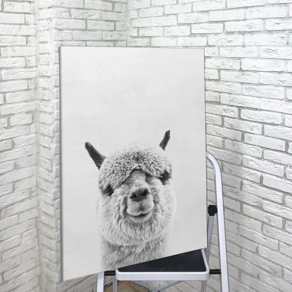 Картина Альпака ЧБ на холсте с подрамником Российской производство Крепление в подарок