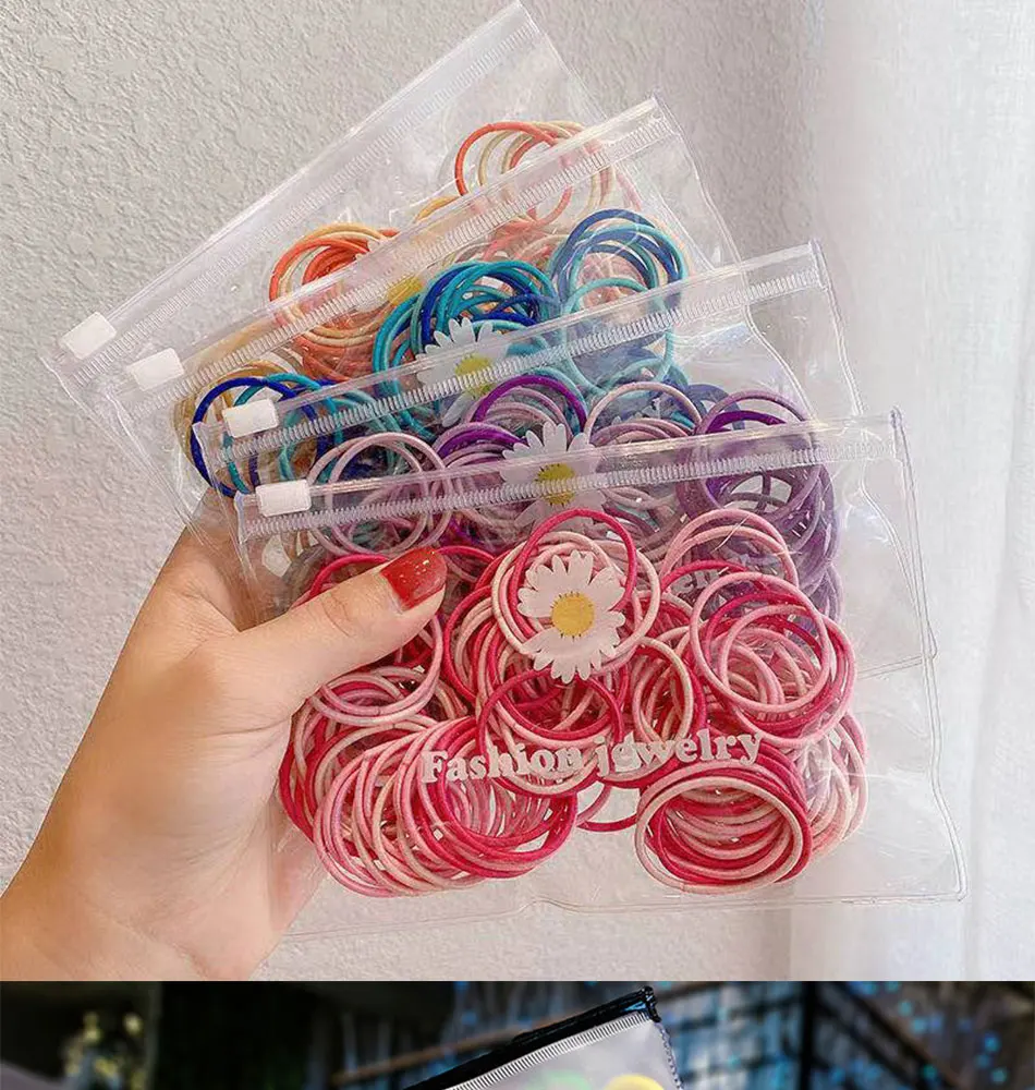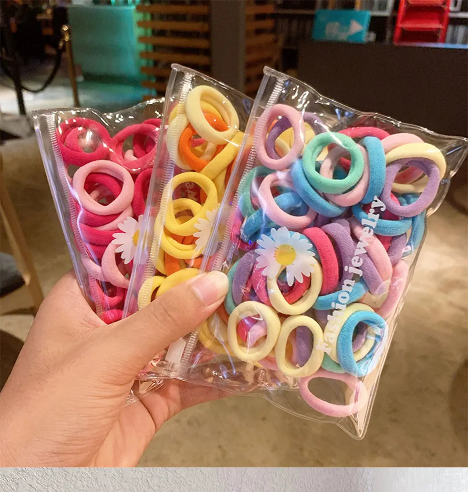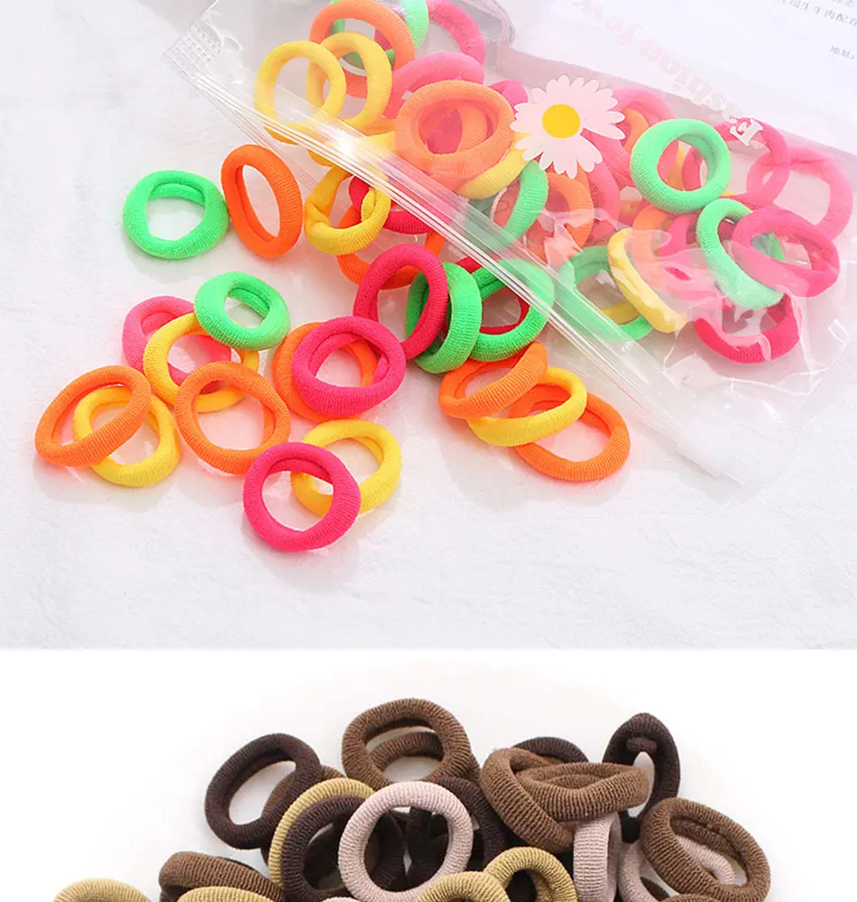 100 шт.набор, цветные эластичные резинки для волос из полиэстера