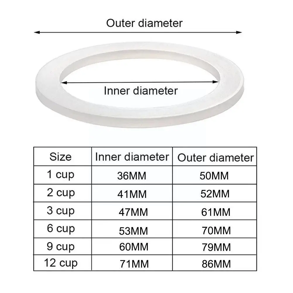 Описание100% новый и высококачественныйЦвет: белыйМатериал: силиконРазмер: 1 чашка: диаметр 50 мм, толщина 3 мм, внутренний диаметр 36 мм2 чашки: диаметр 52 мм, толщина 3 мм, внутренний диаметр 41 мм3 чашки: диаметр 61 мм, толщина 3 мм, внутренний диаметр 47 мм6 чашек: диаметр 70 мм, толщина 3 мм, внутренний диаметр 53 мм9 чашек: диаметр 79 мм, толщина 3 мм, внутренний диаметр 60 мм12 чашек: диаметр 86 мм, толщина 3 мм, внутренний диаметр 71 ммОсобенности:Идеальный подарок для любителей кофе.Изготовлен из высококачественного пищевого силикагеля с хорошим герметичным эффектом.Легко установить, легко использовать и легко чистить.Экономьте деньги. Нет необходимости покупать новые чехлы для замены старых или изношенных чехлов.Сделайте себе чашечку кофе и наслаждайтесь кофе!На выбор 6 размеров: 1 чашка, 2 чашки, 3 чашки, 6 чашек, 9 чашек, 12 чашек.Товар содержит: 1 * уплотнительное кольцо для кастрюль мокко