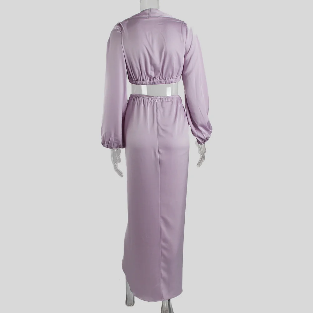 Платье женское атласное с V-образным вырезом и высоким разрезом