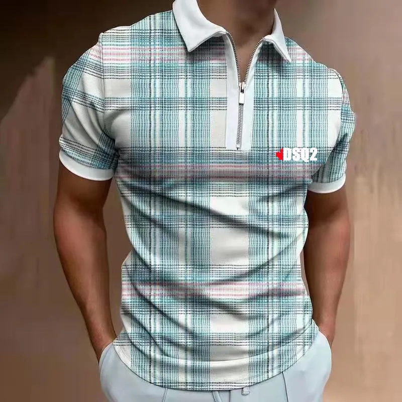 Рубашка-поло мужская с отложным воротником, на молнии, с коротким рукавом