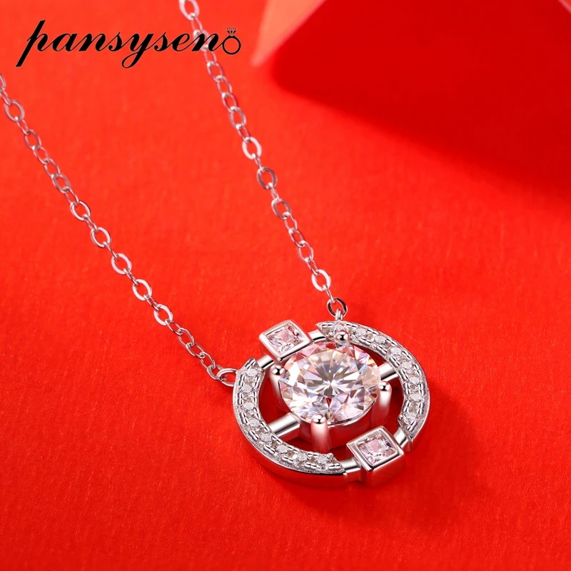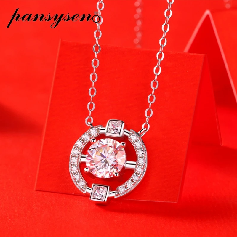 Ожерелье с подвеской для невесты PANSYSEN из серебра 100% пробы, 1 карат D цвета, Муассанит, ювелирные украшения для свадебной вечеринки, оптовая продажа