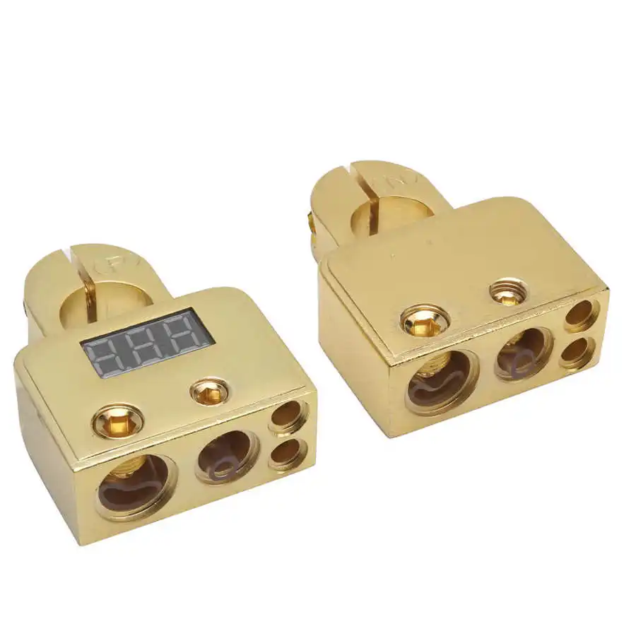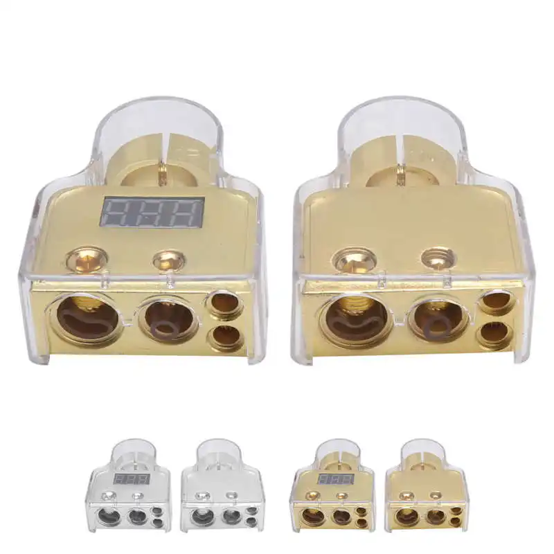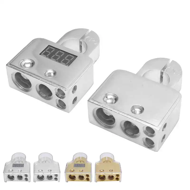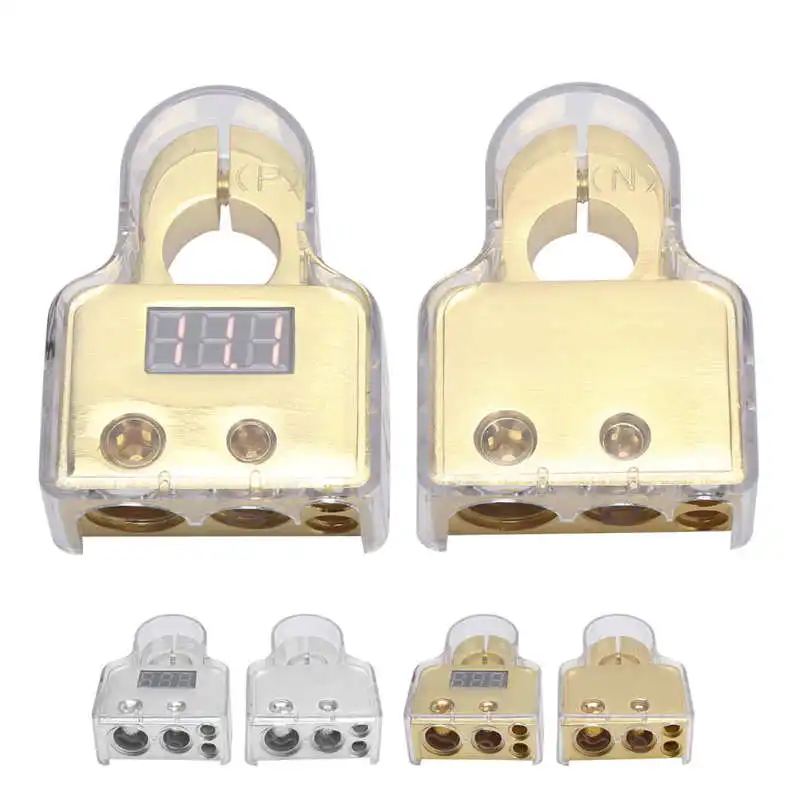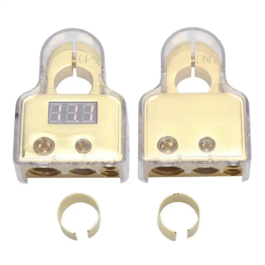 Автомобильные разъемы, клеммы аккумулятора, автомобильные клеммы аккумулятора, Комплект разъемов с цифровым вольтметром, дисплей Stardand Цвет: A (золотистый), B (серебристый)