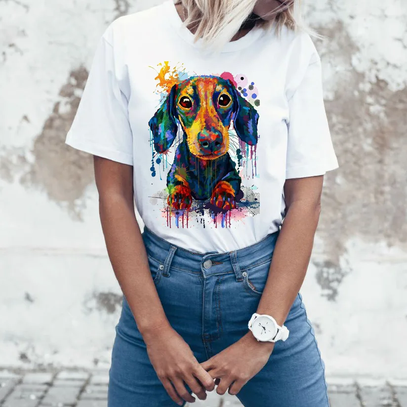 Женская футболка с акварельным принтом, летняя футболка с принтом в виде собаки