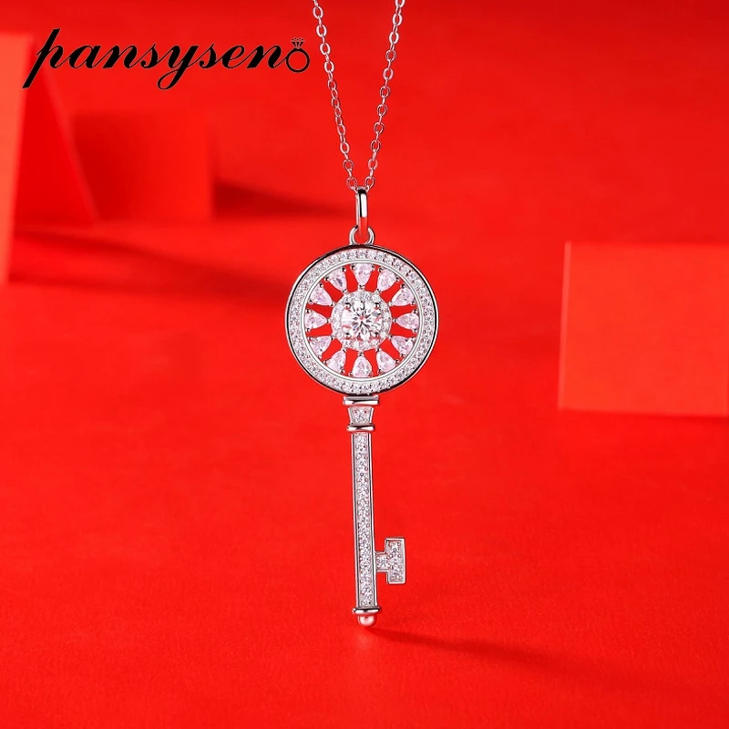Классическое колье в форме ключа PANSYSEN из 100% стерлингового серебра 925 пробы 0, 5 карат, женское ожерелье, подарок на свадьбу, помолвку вечерние, оптовая продажа