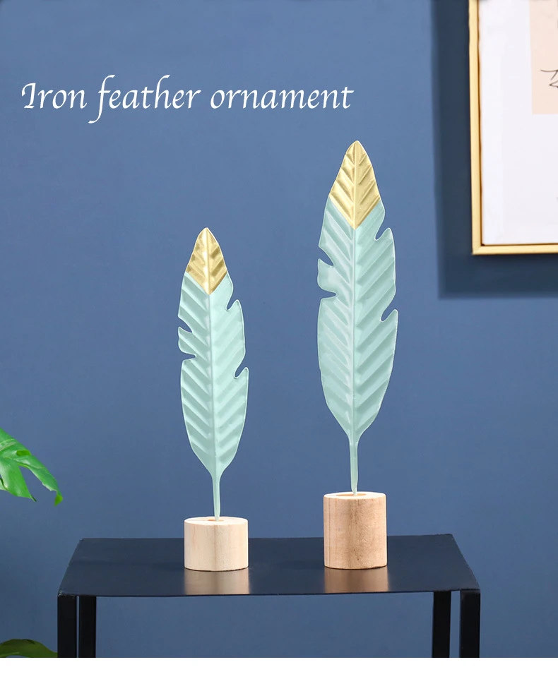 Металлическое перо Morandi, 1 шт., милые украшения для гостиной, деревянная подставка украшения, подарок для рабочего стола