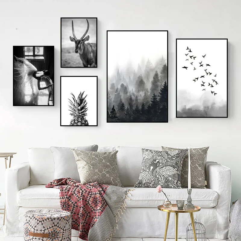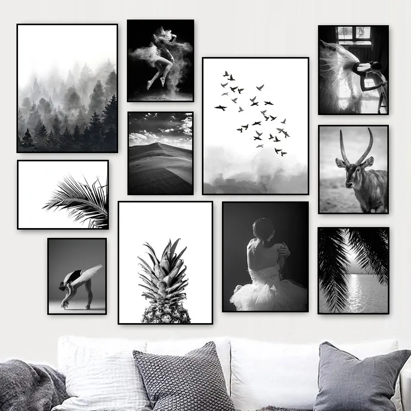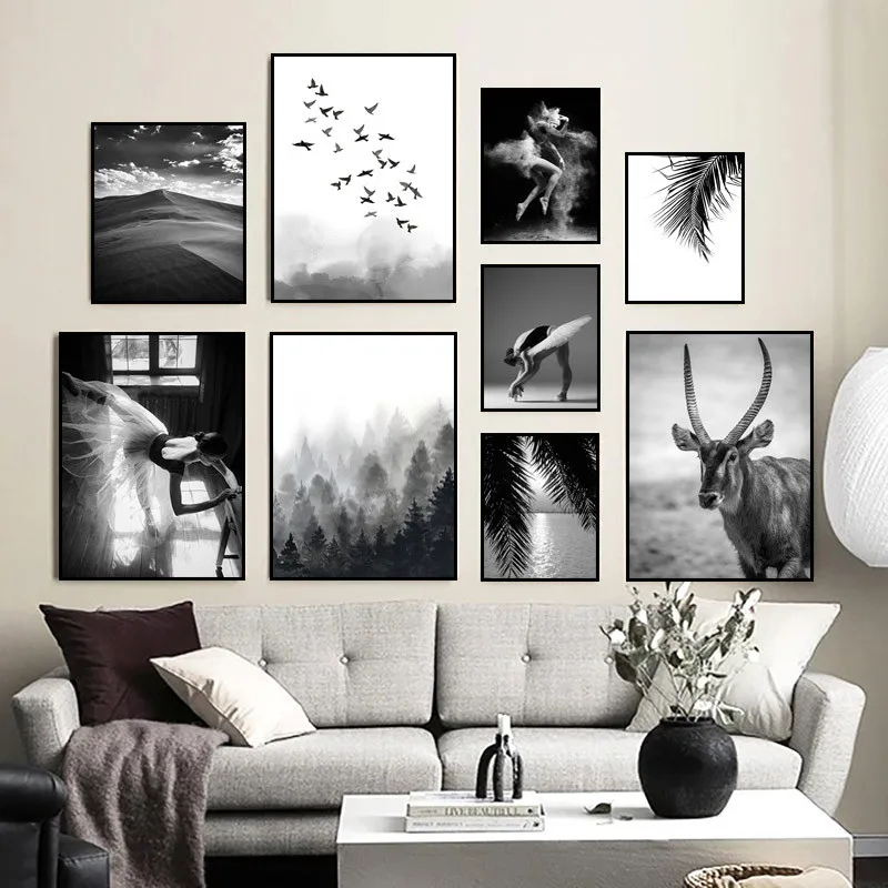 Постер черно-белый в стиле пустыни, с изображением леса и листьев