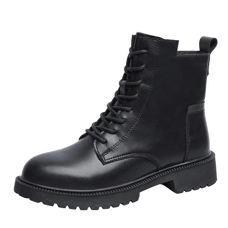 Ботинки женские кожаные на шнуровке, черные, мотоциклетные ботинки на толстой платформе, 2022