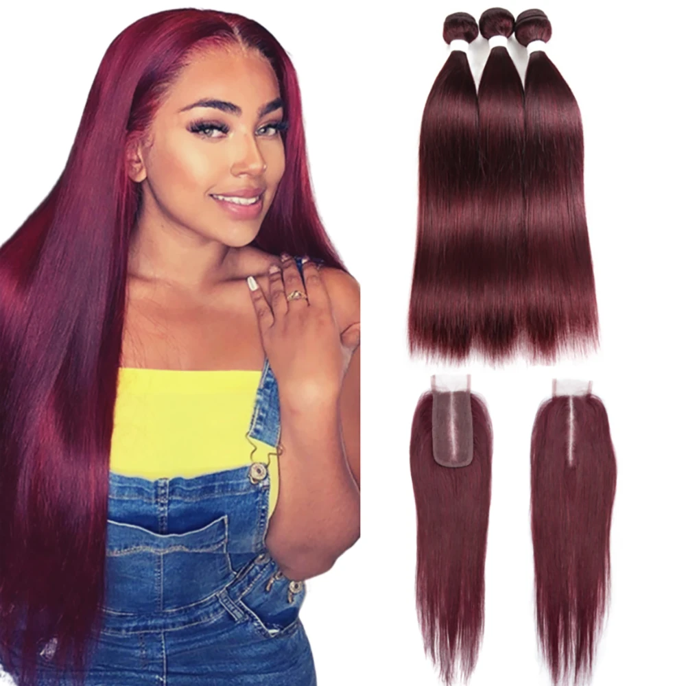 Прямые человеческие волосы Beaudiva 99J 2 #4 #, пряди с застежкой, бразильские волосы, пупряди с застежкой, бордовые 4x2 кружева