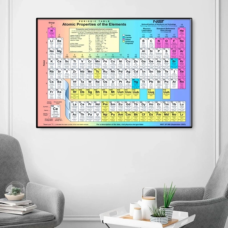 Текстильная книга, плакат на холсте, масляная живопись, химическая живопись, Периодическая таблица химических элементов, настенное искусство, лабораторный Настенный декор