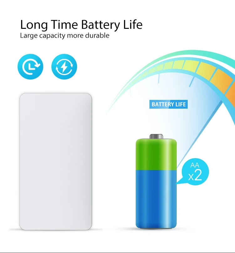 Требуется 2x AA-1.5V (не входит в комплект), и обычно время работы в режиме ожидания нового аккумулятора может длиться 5 лет;