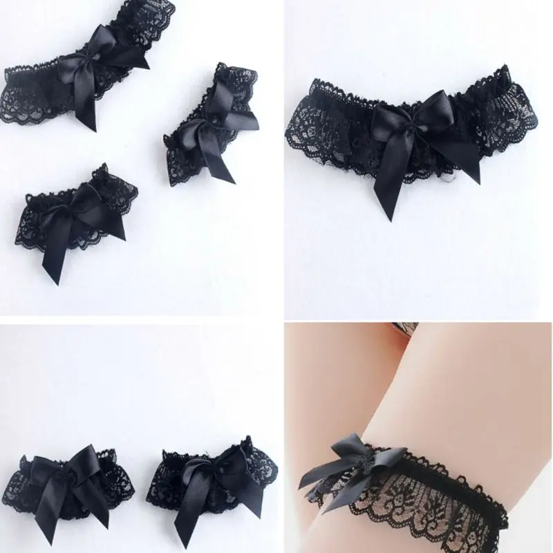Женское свадебное кружевное ажурное кольцо с цветочным узором и широкими штанинами, однотонный ремень на запястье с бантом и зубчатыми эластичными элементами