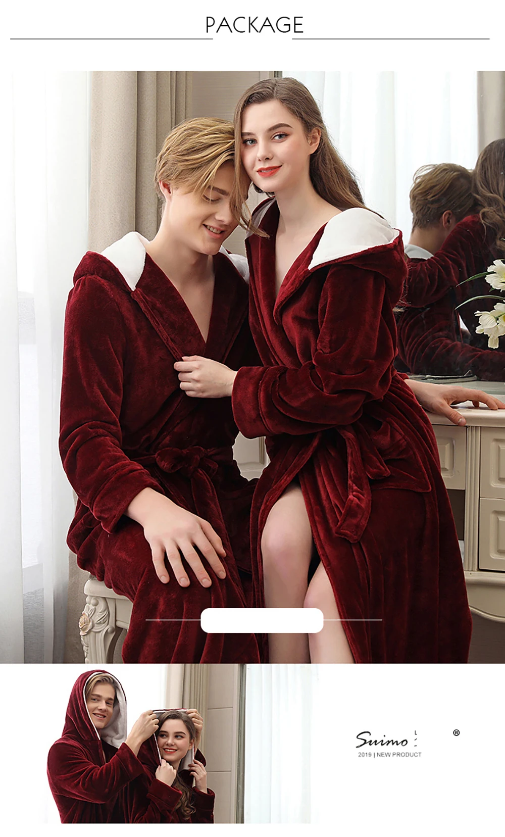 Осенне-зимний фланелевый Халат для мужчин, двухслойный Халат с капюшоном для ванной, пара теплых утолщенных банных халатов размера плюс, женская ночная рубашка для невесты