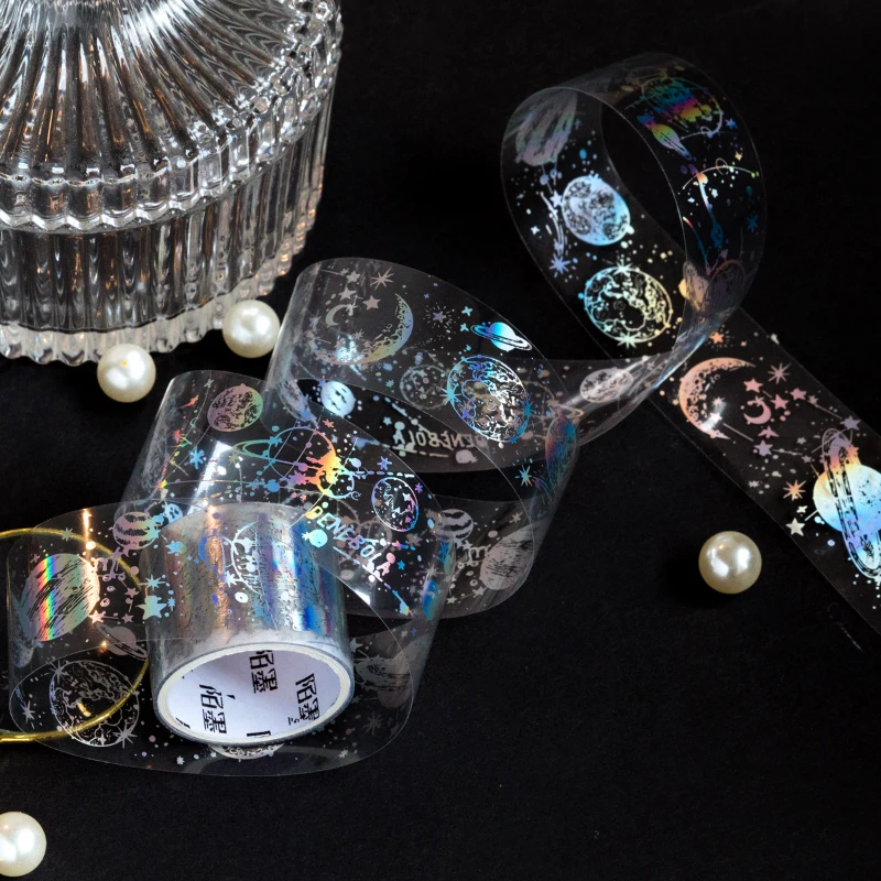Прозрачная водостойкая Блестящая серебряная фольга MOHAMM, 1 рулон, Маскировочная лента с лазерным изображением бабочки и космоса для рукоделия, скрапбукинга, журнала