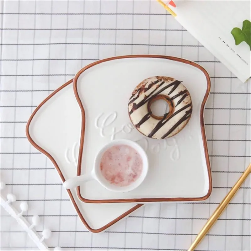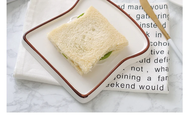 Креативные 6,5 дюймовые тарелки в форме тоста, керамическая тарелка для ужина, фарфоровый поднос для еды, кухонные инструменты, посуда, Детская тарелка в форме хлеба для завтрака