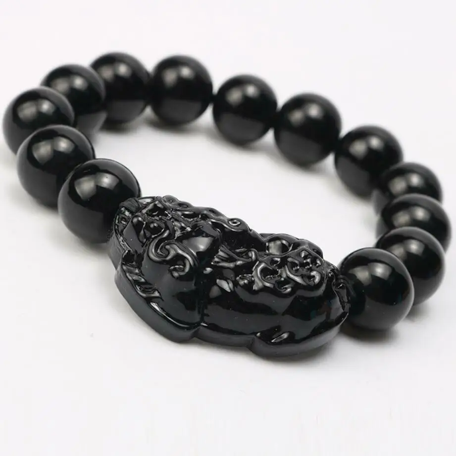 Браслет фэн-шуй пи сюй обсидиан с бусинами из черного камня мужской и женский браслет золотые браслеты с богатством и хорошими удачами 2022