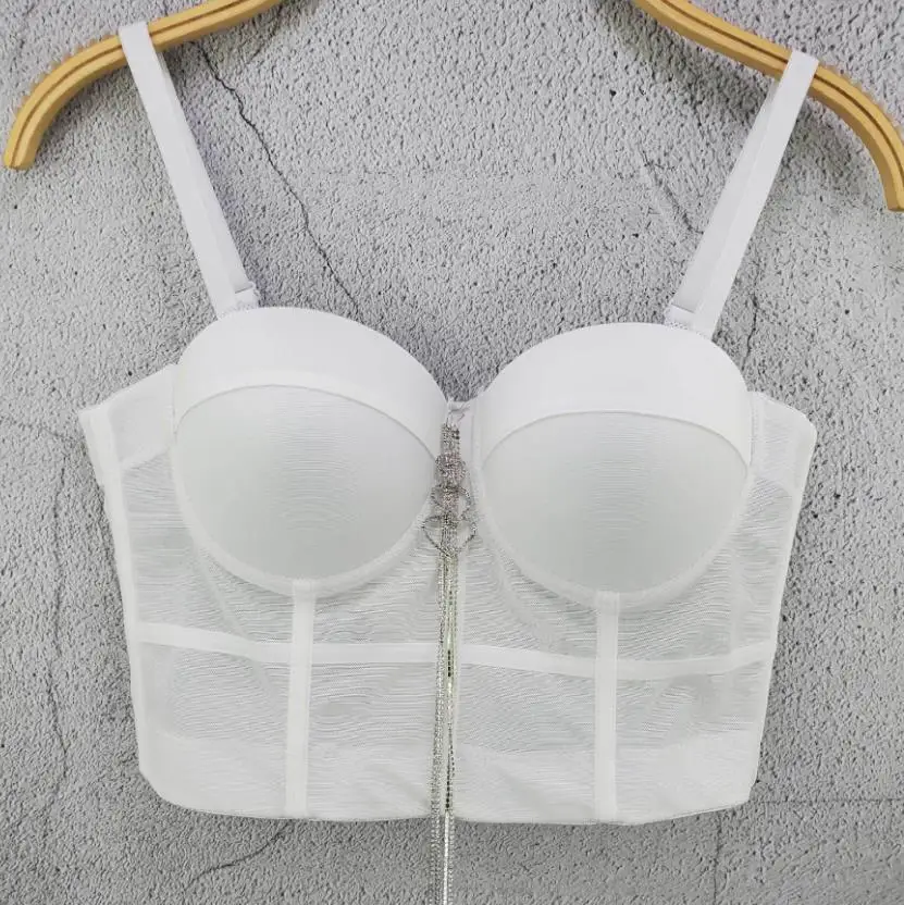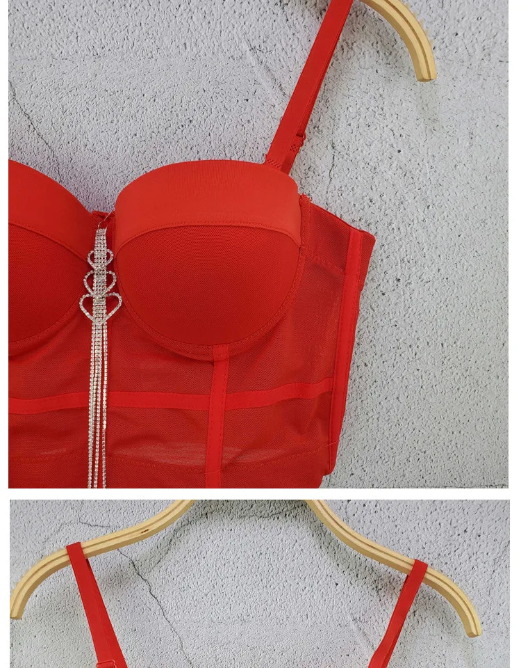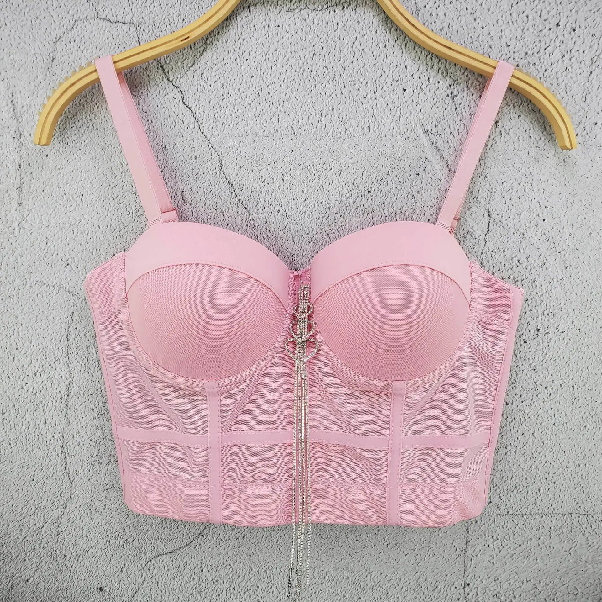 Новинка Стразы бретельки с кисточками в виде влюбленных кулонов сетчатый тонкий дышащий модный бюстгальтер стрейч бюстье сексуальный укороченный топ с открытой спиной для женщин