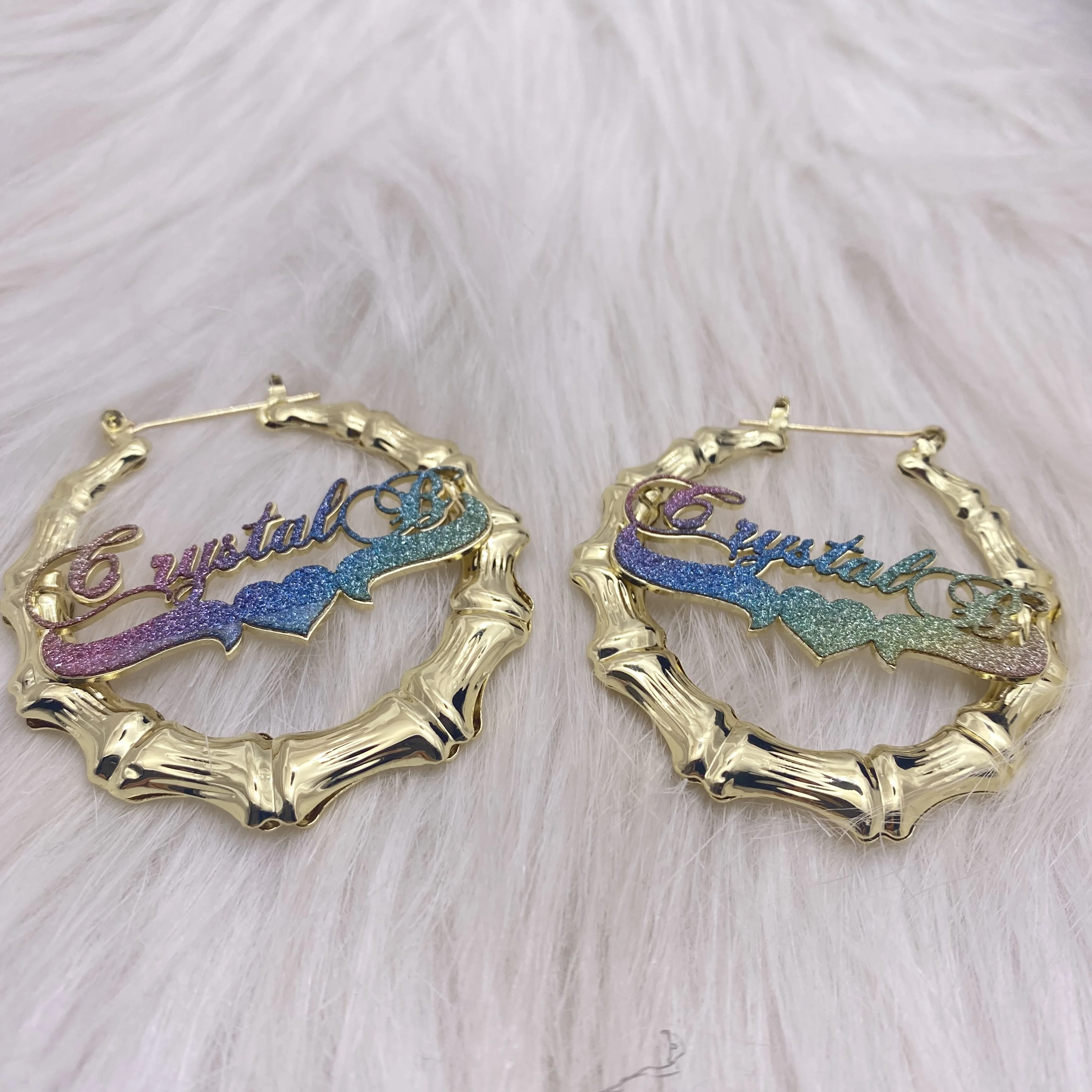 Noelia Ювелирный Комплект под заказ украшение с именем серьги красочная наклейка Бамбук Серьги-кольца индивидуальное название ожерелье для женщин Подарки