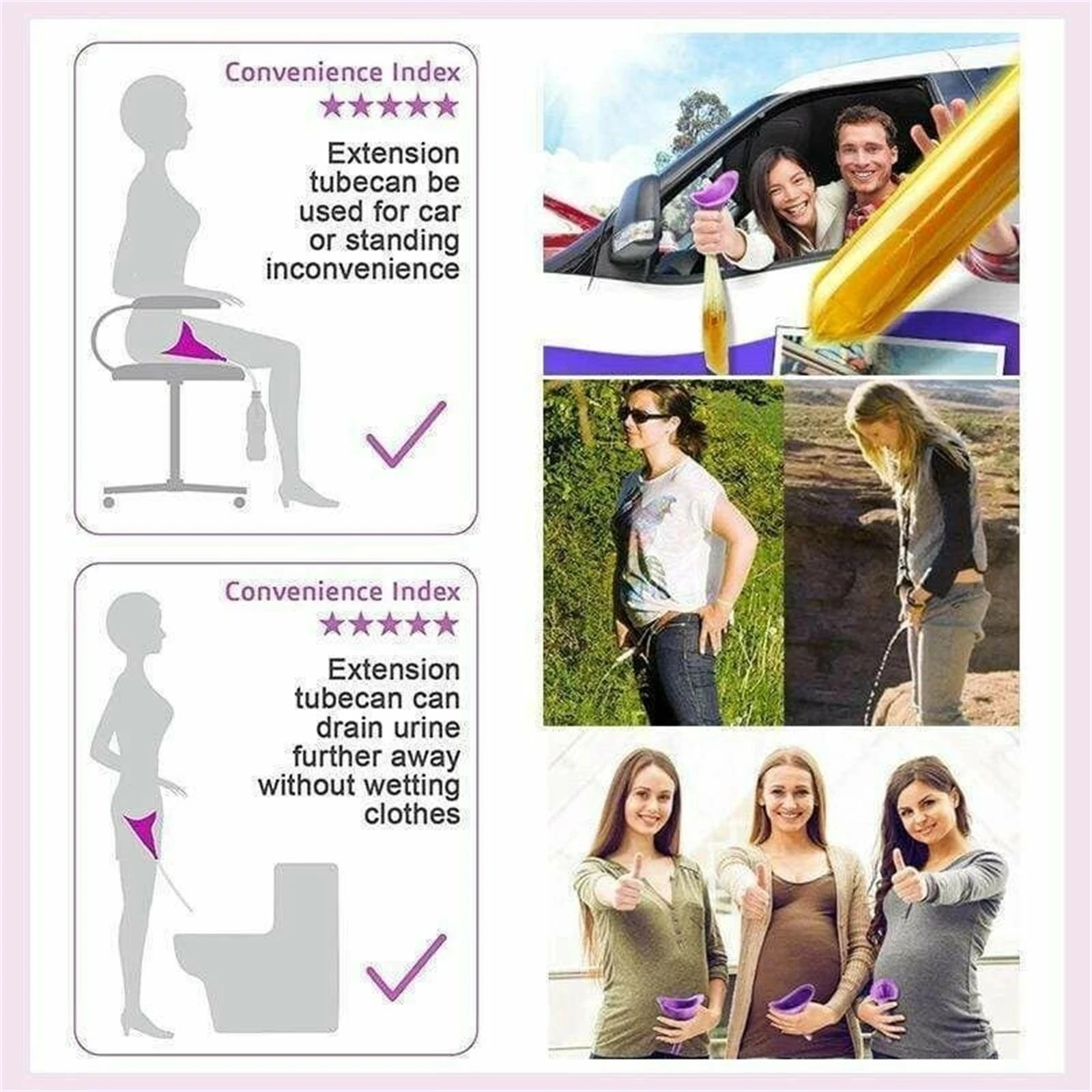 1. Грязный туалет или общественный Туалет2. Отдых на открытом воздухе, путешествия, вечерние или Пешие прогулки3. Беременная женщина или человек, которому трудно сидеть4. Длинная очередь, чтобы использовать туалет или застревать в середине дороги из-за пробки5. Экстренный писк