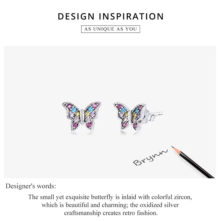 Женские серьги-гвоздики с разноцветными цирконами bamoer, из настоящего серебра 925 пробы, с бабочкой и стрекозой, эффектные ювелирные изделия