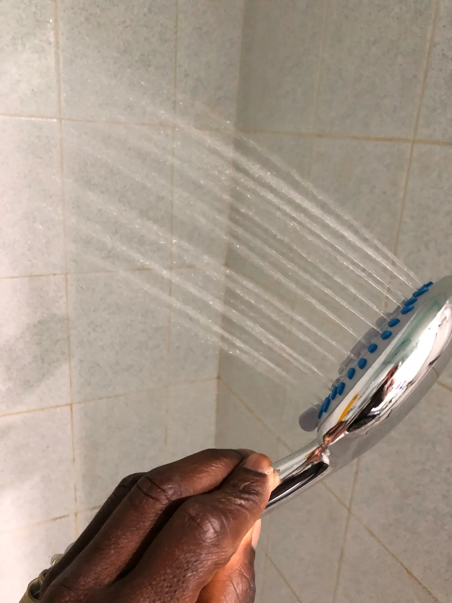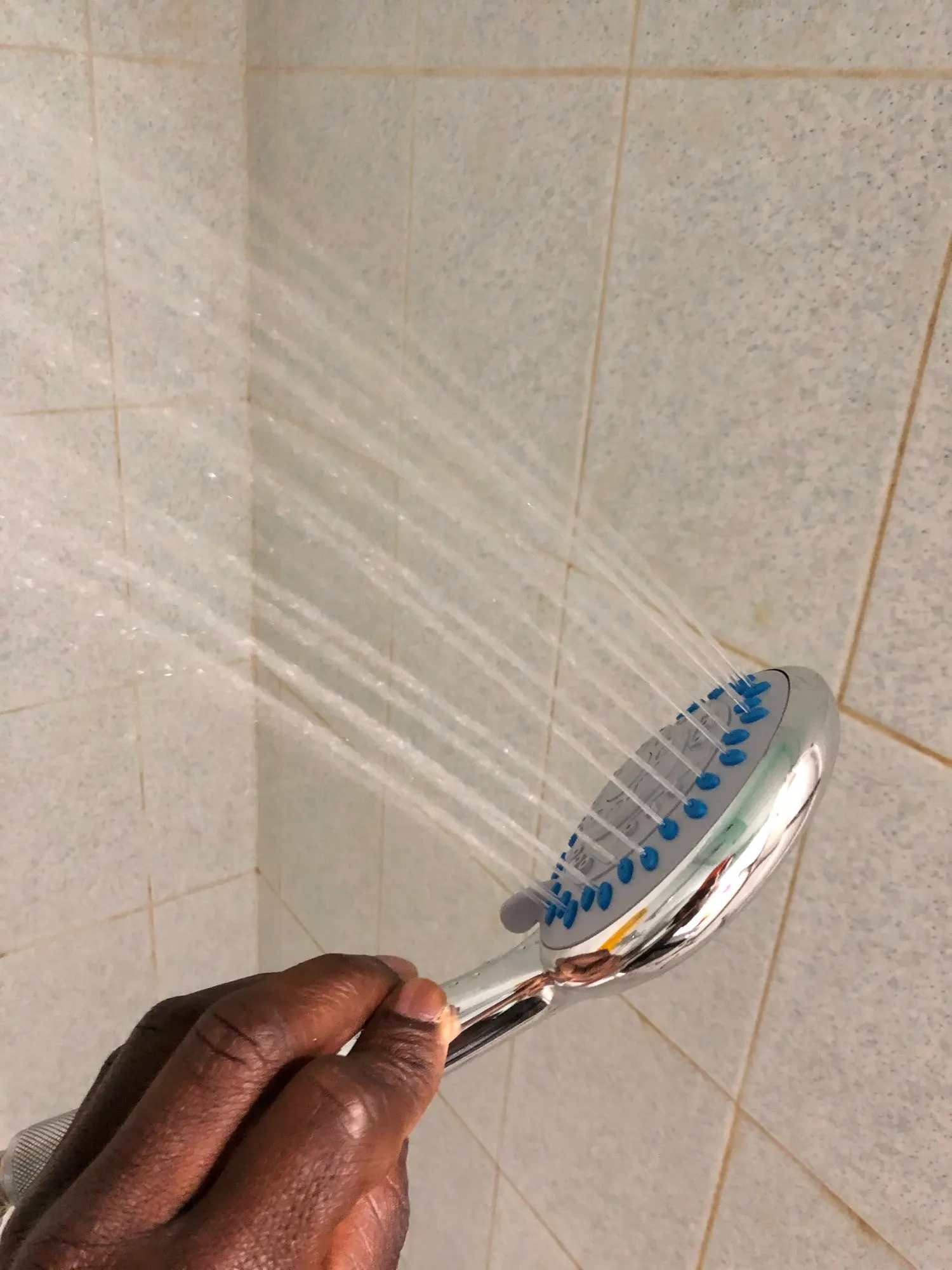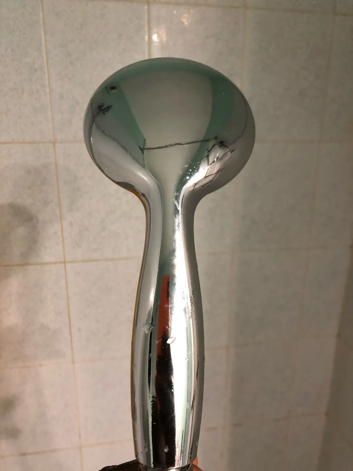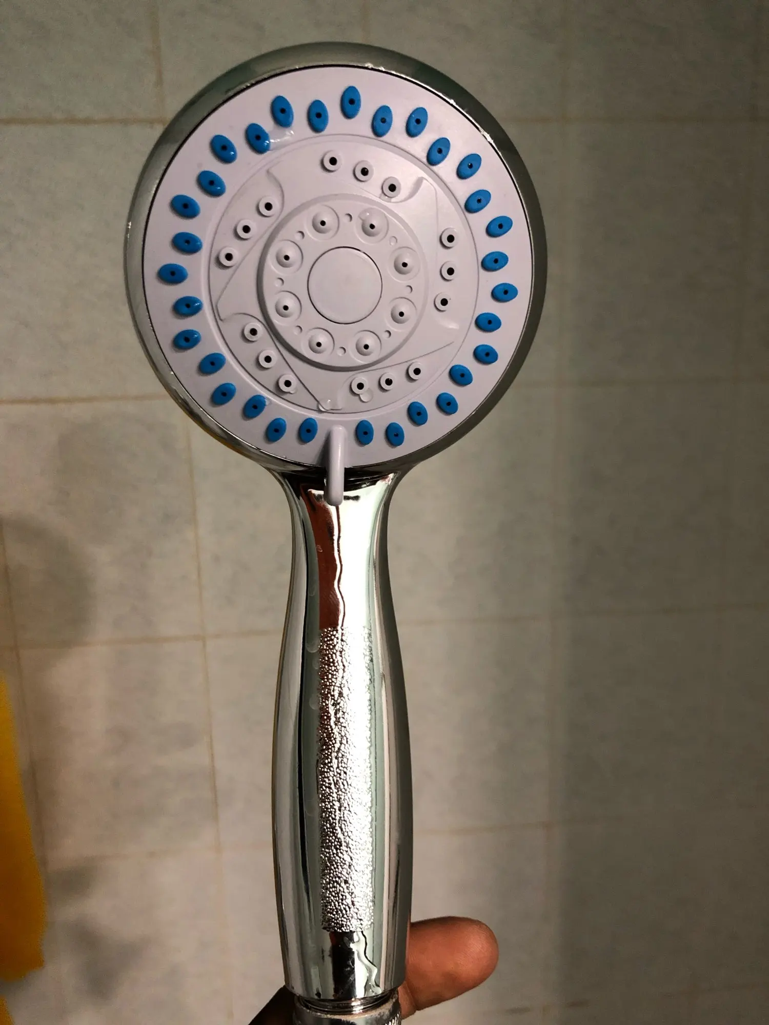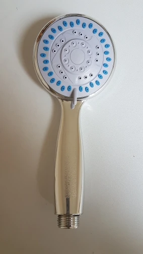 vino pronto el pedido la alcachofa en plástico con una mano de pintura no lo he probado tiene varias posiciones para la salida del agua