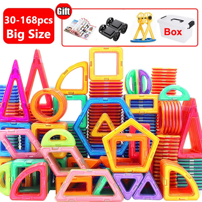 Магнитный конструктор, 30-168 шт., большой размер, магнитные строительные блоки, аксессуары, развивающий конструктор, игрушки для детей