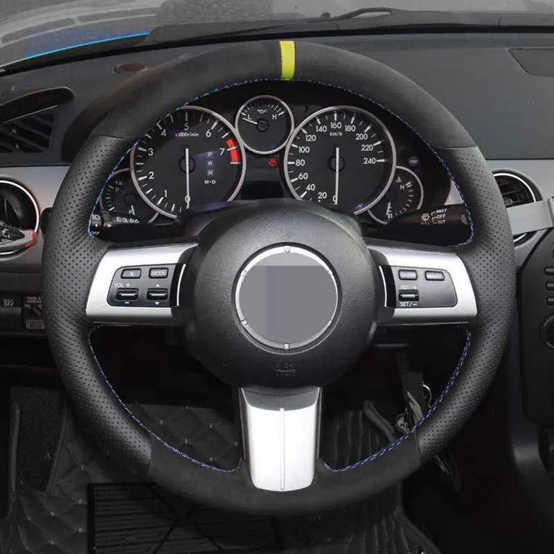 Черные замшевые ручные стежки чехол рулевого колеса автомобиля для ...