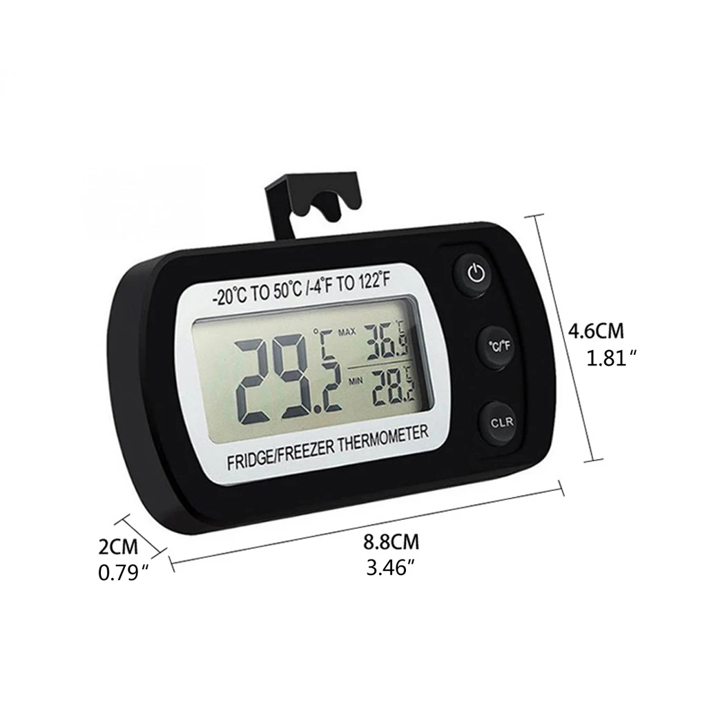 Особенности:Водонепроницаемый цифровой холодильник термометр для холодильника морозильная камера высокоточный электронный термометр сигнализация с магнитным крюкомХарактеристика:Его можно повесить и разместить.Ультра низкое энергопотребление.Максимальная температура и минимальная температура отображаются на одном экране.Он может преобразовываться из Цельсия в Фаренгейт.