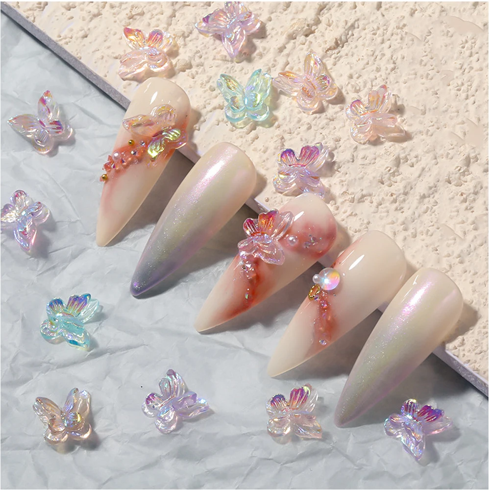 10 шт. акриловый блеск для маникюра 3D двухслойные Стразы бабочки Очаровательная резиновая часть Сделай Сам дизайн ногтей Декор искусственные принадлежности