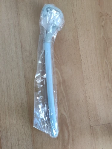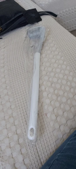 Поставляется с задержкой, но выглядит как хороший Продукт. Он не слишком мягкий, затем эффективно очищает. Достигает все точки более скрытыми. В комплект также входит клейкий крючок, очень удобный. Рекомендуем покупать.
