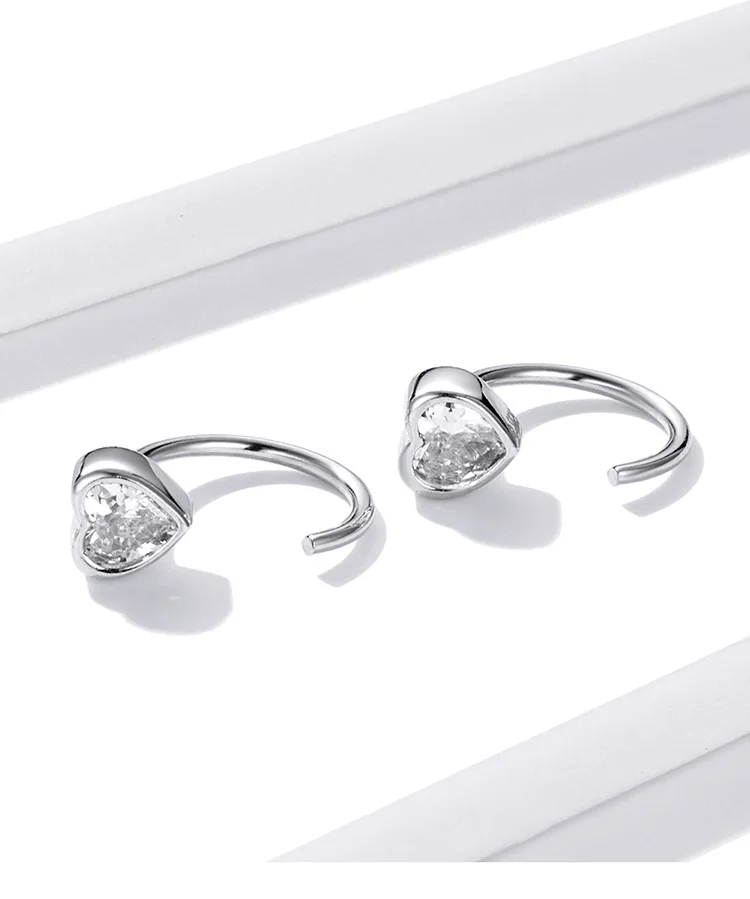 Серьги-Крючки женские из серебра 925 пробы, в форме сердца, с кристаллами, BSE516